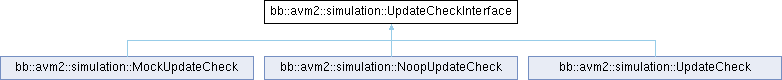Implemented in bb::avm2::simulation::NoopUpdateCheck, and bb::avm2::simulation::UpdateCheck.